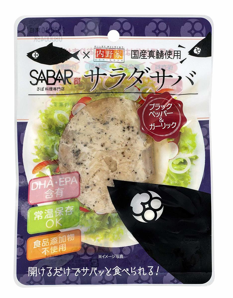 10個 サラダサバ ブラックペッパー & ガーリック味 無添加 たんぱく質【SABAR × 内野家 国産真鯖使用】セット プロテイン ダイエット サバ 鯖 さば 非常食 保存食 常温 サラダフィッシュ 送料無料