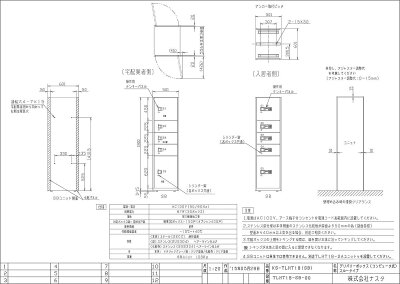 商 品 詳 細商品名【KS-TLHT18-SB ユニットタイプB ステンレス扉】 宅配ボックス/前入後出/コンピューター式サイズ・重量●本体サイズ:H1800×W501×D601 ●103.0kgユニットのボックス構成ボックス内寸法ユニットタイプB(5段構成)※上から順:ボックスタイプ:内寸 1番目:Sボックス:H410×W375×D515 2番目:SSボックス:H200×W375×D515 3番目:SSボックス:H200×W375×D515 4番目:SSボックス::H200×W375×D515 5番目:Mボックス:H580×W375×D515(※非常脱出機構付き)材質本体:スチール(SECC)、焼付塗装メタリックグレー 扉:ステンレス(SUS304)、ヘア—ライン仕上げ、クリア塗装 化粧板:ステンレス(SUS304)、ヘア—ライン仕上げ、クリア塗装仕様使用環境:屋内周囲温度-10℃〜+40℃ 電源:単層100V(50/60Hz) アース:第3種接地相当 定格消費電力:67W(30ボックス) 登録住戸数:150戸(オプション400戸) 識別方法:暗証番号方式 施開錠方法:CPUによる電気式施開錠、管理キーによる手動開錠 扉センサー:リミットスイッチ方式 安全機能:非常時緊急開放機能、荷物長時間滞留警報機能 基本性能:受け取り 操作方法:テンキーパネルボタン 着荷連絡:テンキーパネル住戸番号表示 預り印発行:お届け時に手動にて押印 停電保証:メモリーバックアップ機能付き特長●荷物が届くとテンキーパネルに部屋番号が表示され、着荷を知らせます。