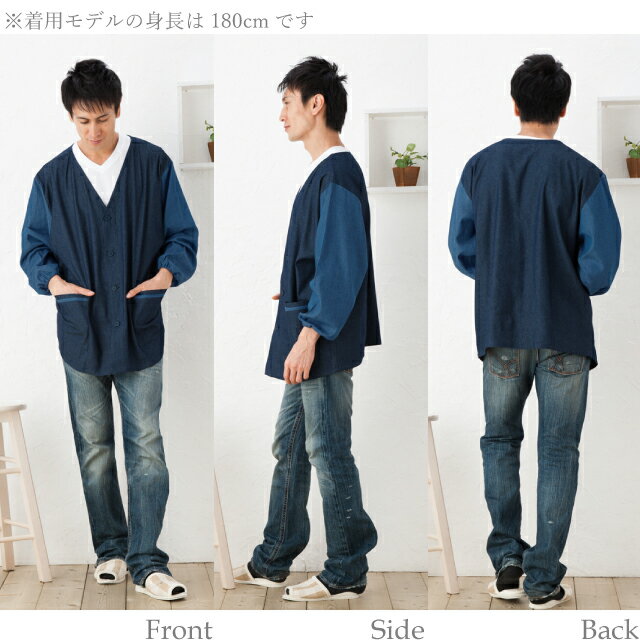 【メール便対応可】【日本製】配色デニム前開きメンズかっぽう着 男性用 大きいサイズ シンプル おしゃれ デニム スモック 陶芸 前開き 着やすい プレゼント ギフト 父の日【Y】